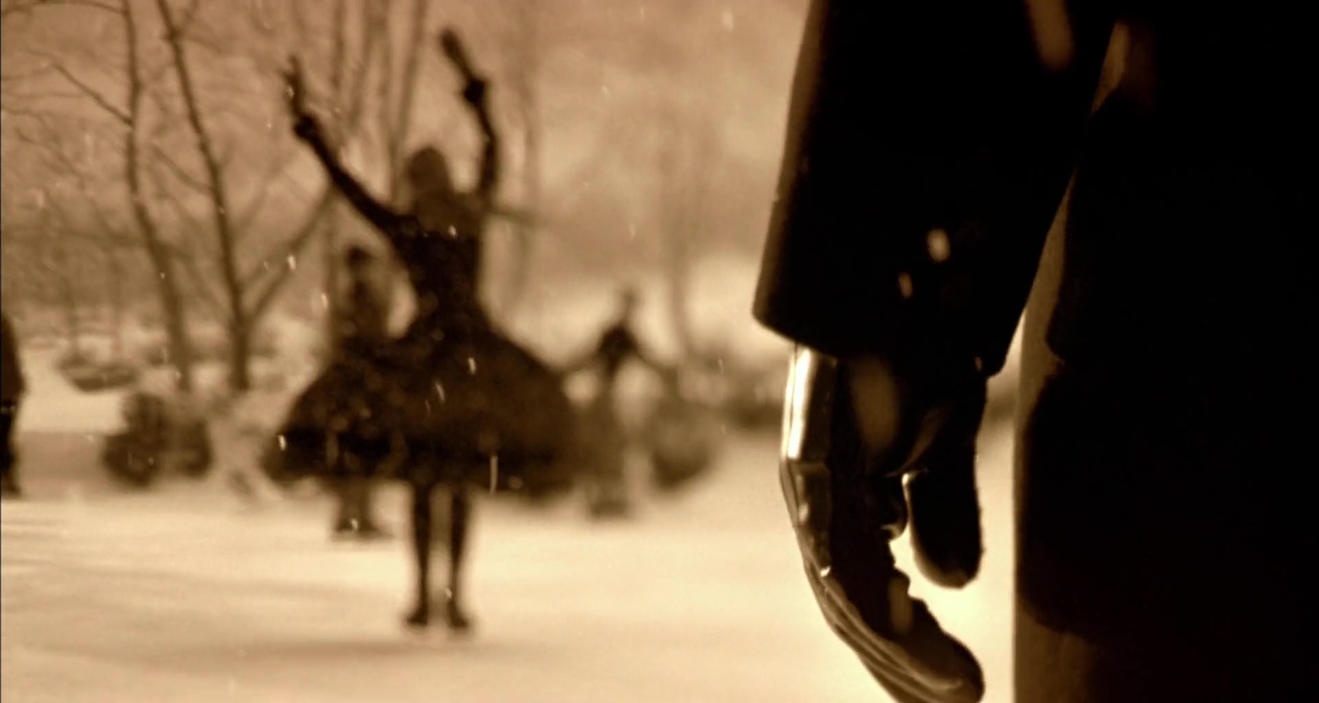 ‘when he (the father) was very young, he was very handsome and an excellent skater. She (her mother) was very innocent, very beautiful. And he was already engaged, but he couldn’t stop watching my mother. And finally, his fiancée got very jealous and threw that engagement ring right back at him. And that very same day he took my mother by the hand, he danced her out to the middle of the forest-fringed lake, he got down on one knee and offered her the very same engagement ring. And that precise moment, which is the thing my mother always added, it started to snow.‘ (Campion, 2003)